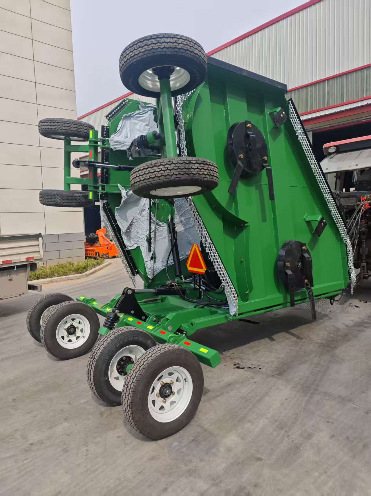 The M-Series wide-cut rotary mowers with folding wings and enhanced power output set new standards in mowing performance. Equipped with 20 cutting blades as standard, they are designed for heavy-duty use and provide the finest grass and shrub trimming. Thanks to power transmission using multiple gearboxes, each with friction clutch protection, the power is evenly distributed throughout the mower, ensuring excellent reliability and durability.